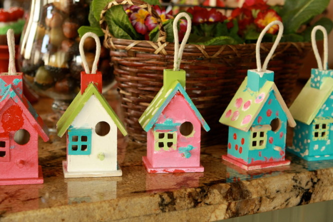 To begin with, you will need some wooden birdhouses. Gather your Washi Tape and a good coat of white spray paint for the Birdhouses. Then unleash your inner creativity and decorate your birdhouse. For around $1.25…these little gems would also make a great gift! Have fun!