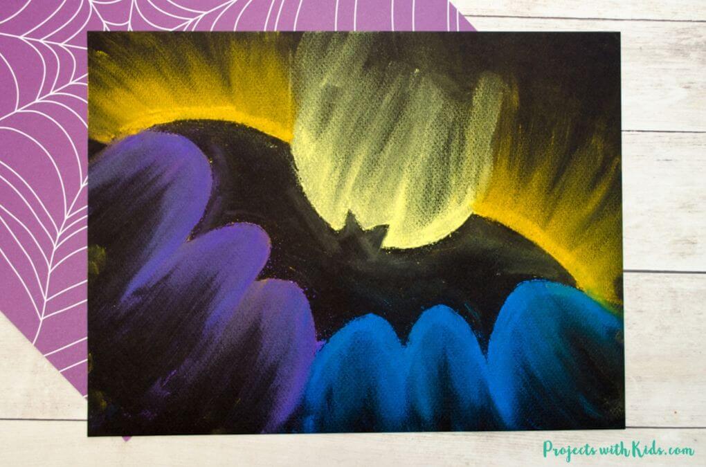 Easy Spooky Bat Chalk Pastel Art Project On Black Paper