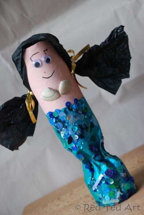 Design a mermaid using a paper roll, glitter, and paper tail. This magical craft sparks underwater imagination. Great for ocean themes or dress-up play—perfect for mermaid lovers of all ages.